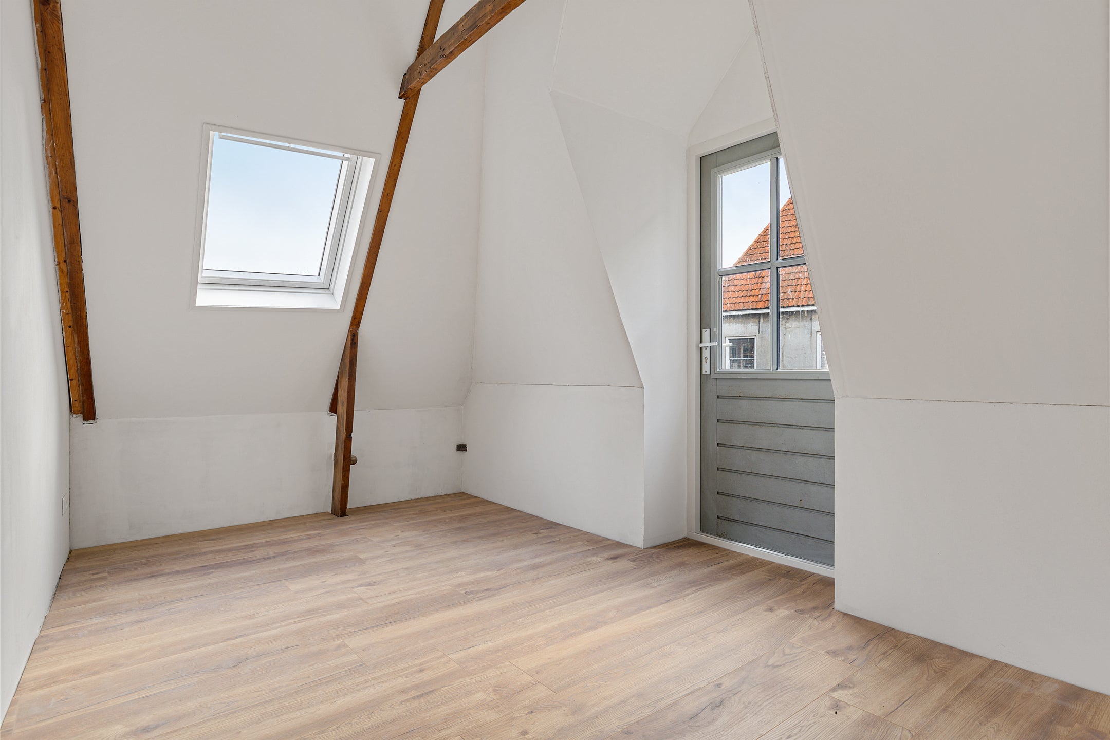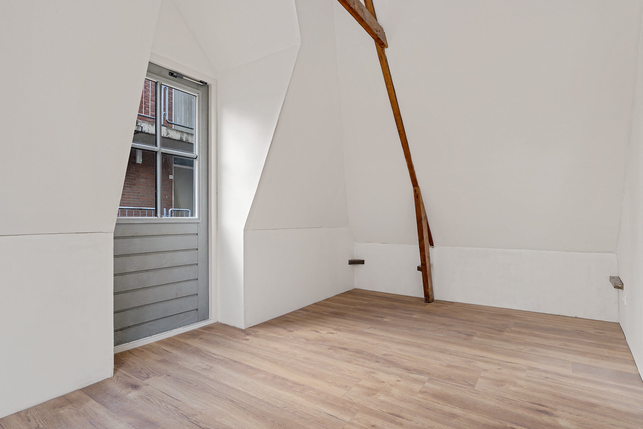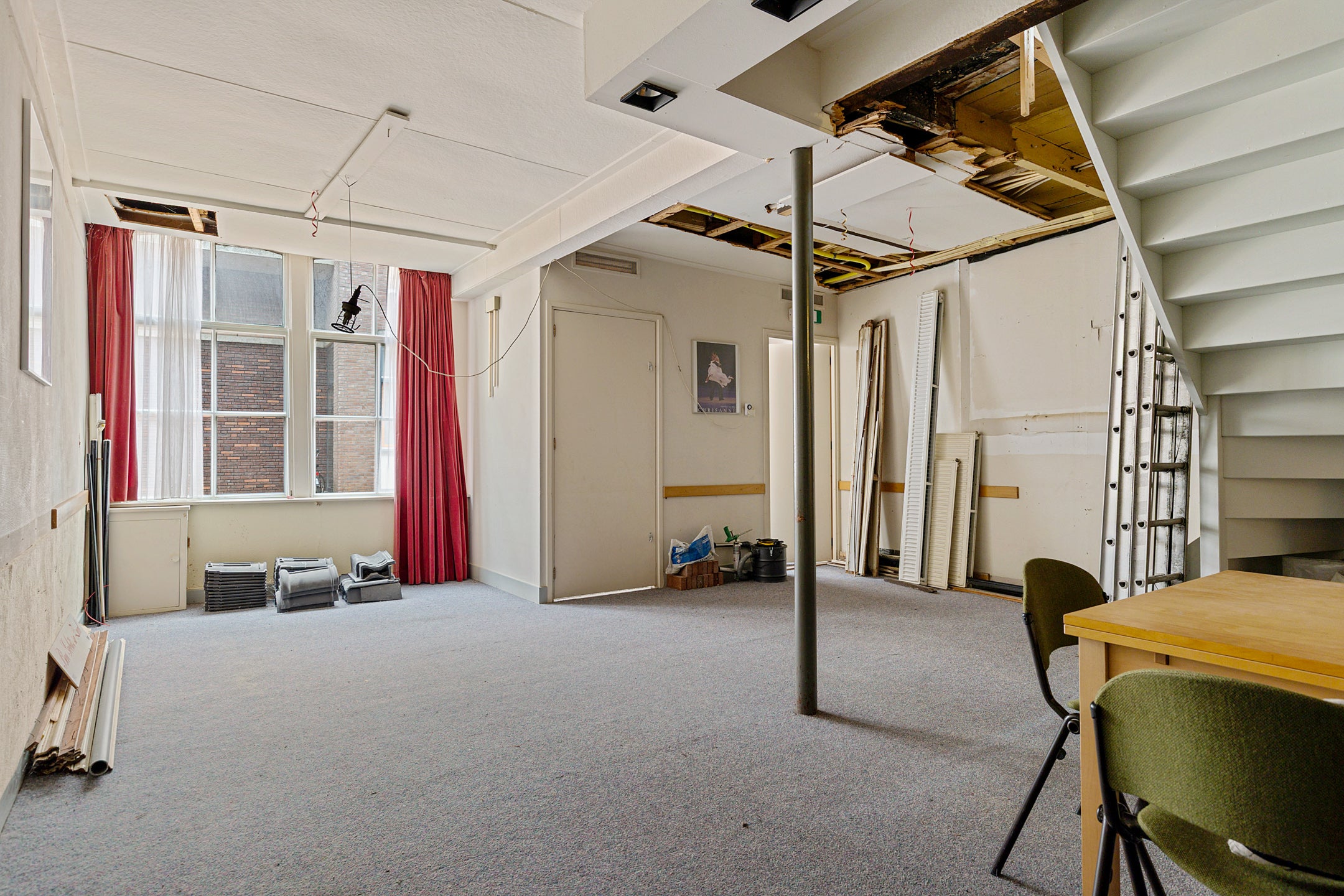 De begane grond biedt circa 66 m² aan ruimte voor kantoor of opslag, inclusief keuken, toilet en toegang tot de woonverdiepingen. Op de eerste verdieping is een woonruimte van ook circa 66 m², met voorzieningen voor een keuken, badkamer en toilet. De tweede verdieping heeft twee slaapkamers en een overloop, met toegang tot het platte dak.