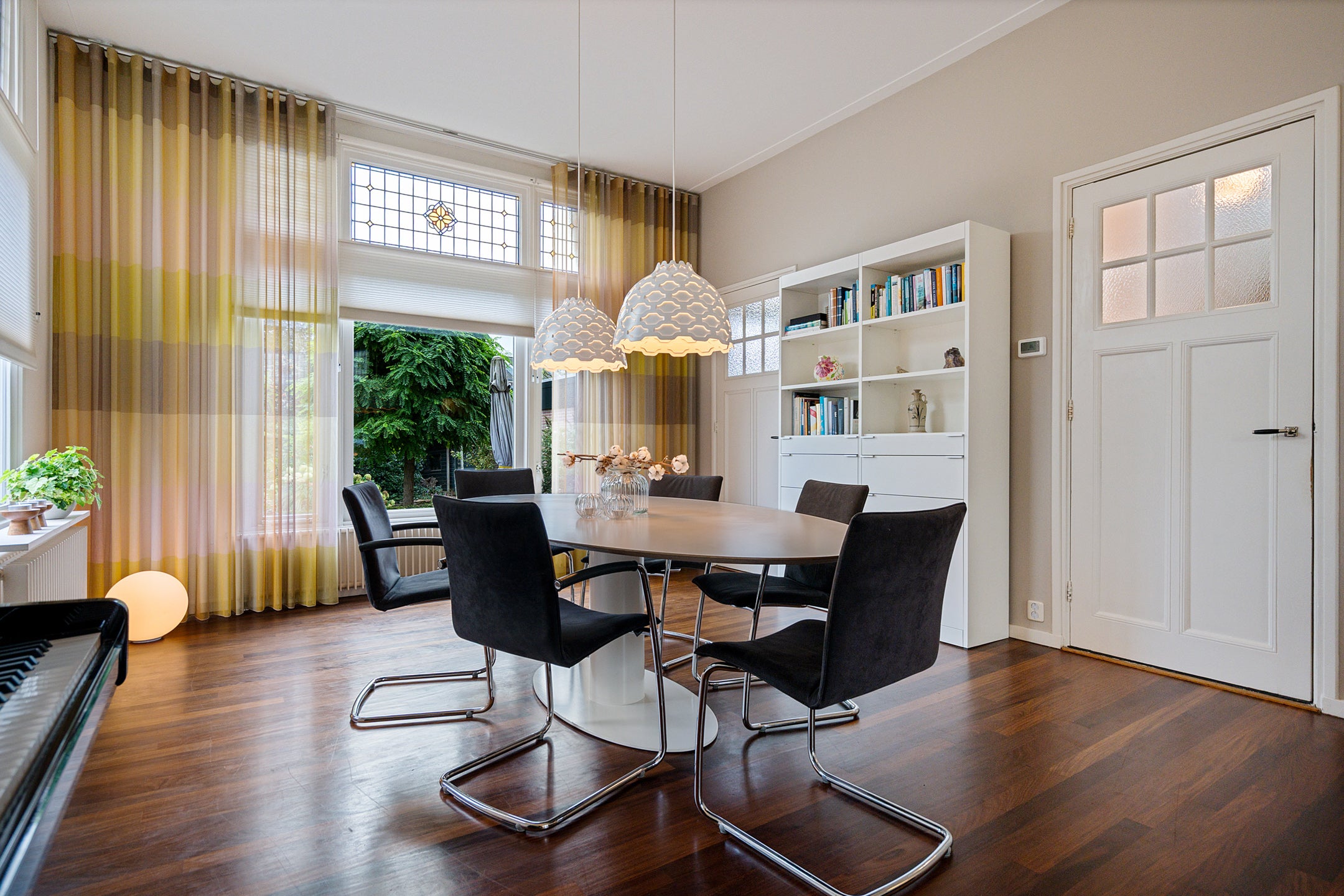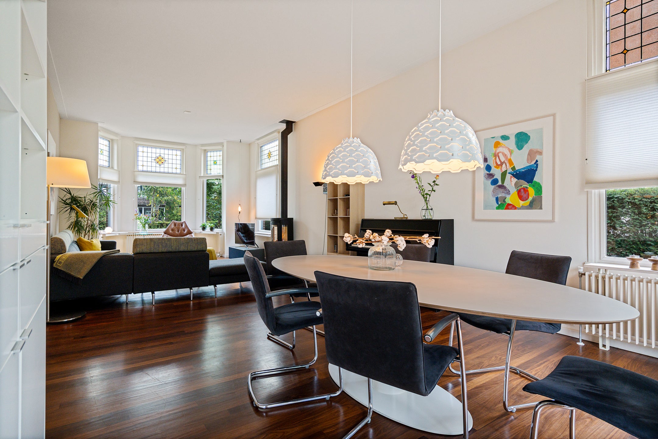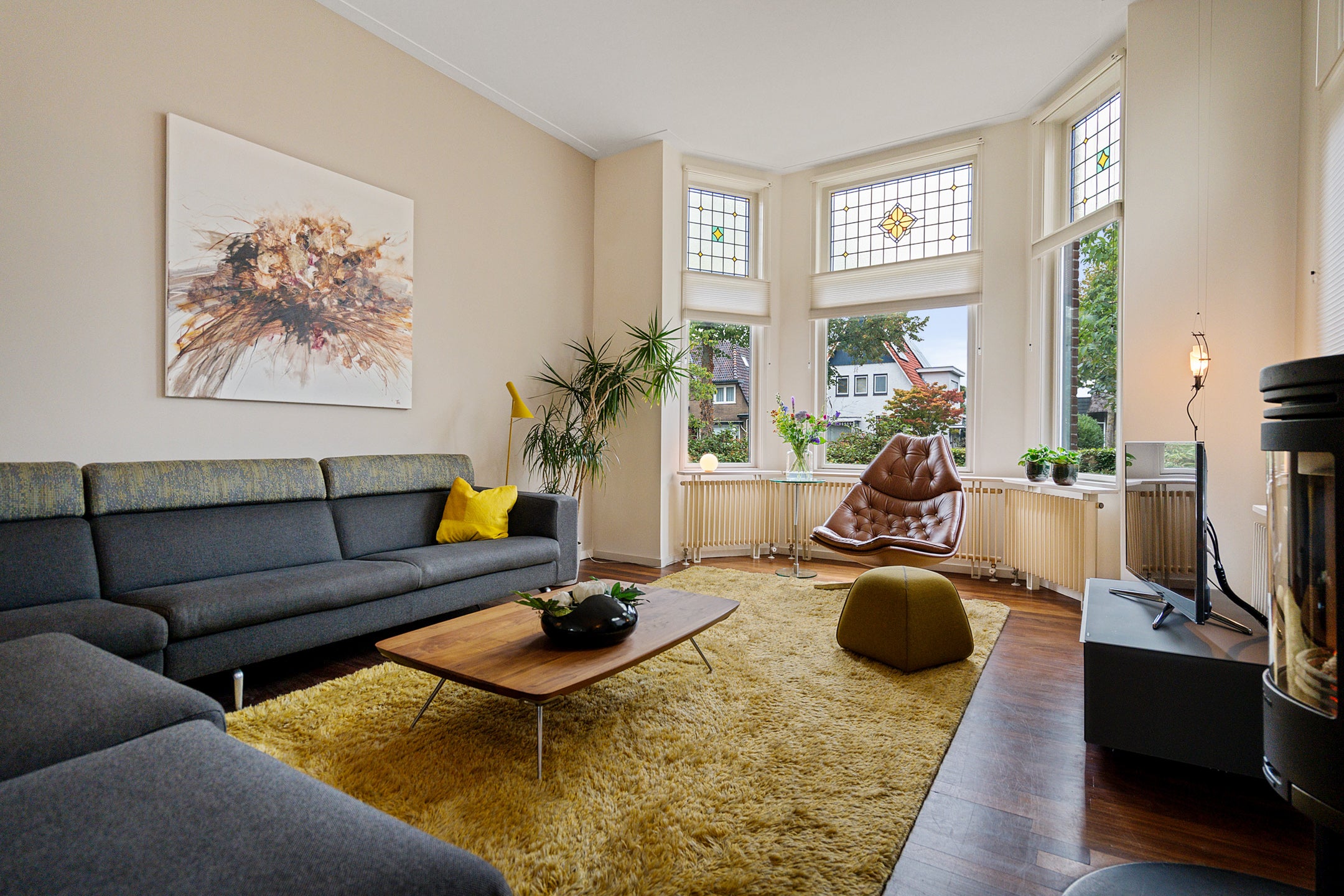 Deze ruime stadsvilla uit 1919 biedt met een woonoppervlakte van 346 m² veel ruimte verdeeld over drie woonlagen en een grote aanbouw. De woning is een gemeentelijk monument met originele stijlkenmerken zoals hoge plafonds, houten vloeren, en glas-in-lood ramen. De begane grond heeft een entree met vestibule, een kantoor of speelkamer, een riante woonkamer van 44 m² met een erker en tuingerichte raampartij en een keuken met inbouwapparatuur. Boven zijn vier slaapkamers en een moderne badkamer. De tweede verdieping heeft nog eens twee slaapkamers en een ruime berging. De grote groene tuin biedt veel privacy en heeft een gazon en terras. Gelegen aan een rustige weg, dichtbij het centrum en met goede verbindingen naar de regio.