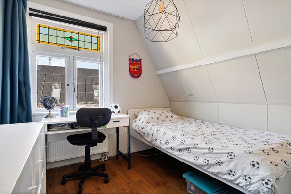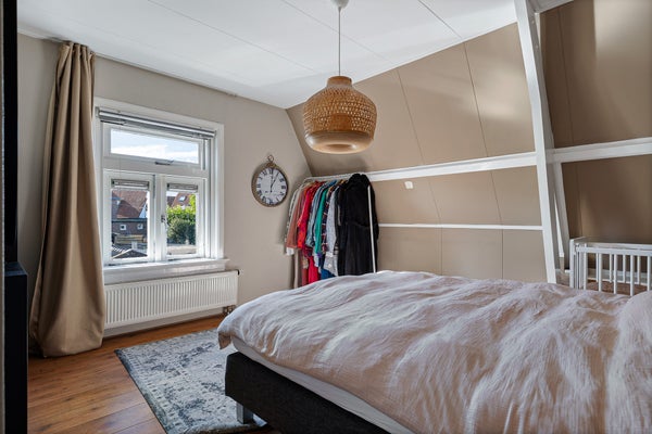 - De vrijstaande woning heeft een woonoppervlakte van 104 m² en beschikt over 5 kamers, waarvan 4 slaapkamers;