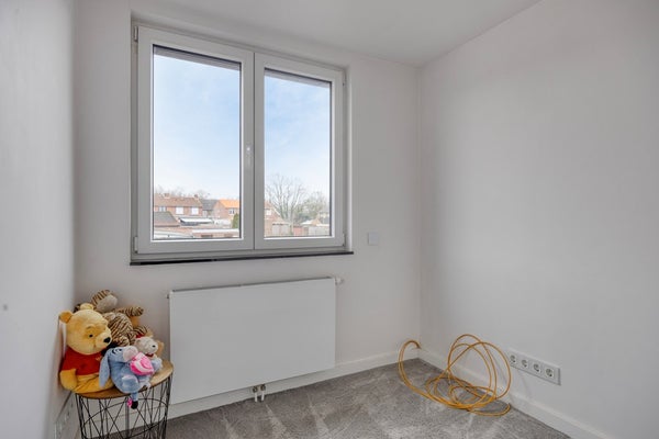 Via de overloop bereikt u drie comfortabele slaapkamers, de moderne badkamer, wandkast en de praktische bergzolder, die toegankelijk is via een vlizotrap. De volledig betegelde badkamer (ca.6m²) is recent vergroot en gemoderniseerd, waardoor er extra ruimte is ontstaan en optimaal comfort wordt geboden. De badkamer is voorzien van een stijlvol wandcloset, een ruime inloopdouche, een fraai wastafelmeubel met waskom, een toiletspiegel, een separate wandkast en een designradiator. Slaapkamer I (ca.10m²) gelegen aan de voorzijde van de woning is momenteel in gebruik als kleedkamer. Slaapkamer II (ca.11m²) en slaapkamer III (ca.5m²) beide aan de achterzijde gelegen. Slaapkamer III beschikt nog over een wandkast. Alle drie de slaapkamers en de overloop zijn van vloerbedekking voorzien.