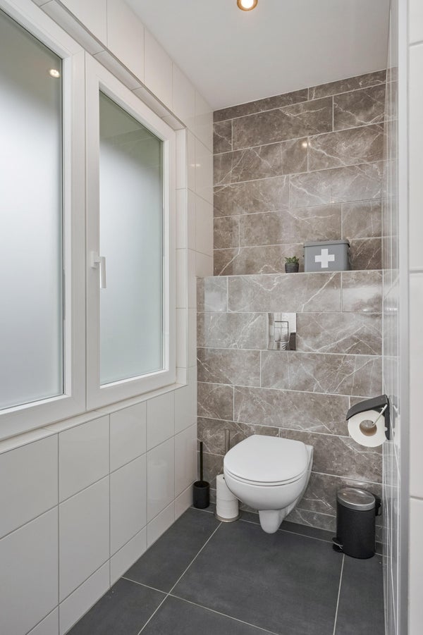 Vanuit de hal is ook het toilet bereikbaar, dat volledig betegeld is en een raampje heeft voor natuurlijke ventilatie.