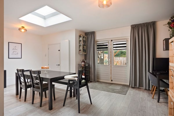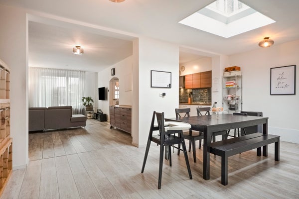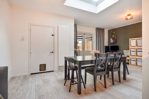 Verduurzaamd met kunststof kozijnen en triple glas, een vernieuwde cv-ketel en een grote aanbouw met lichtkoepel.
