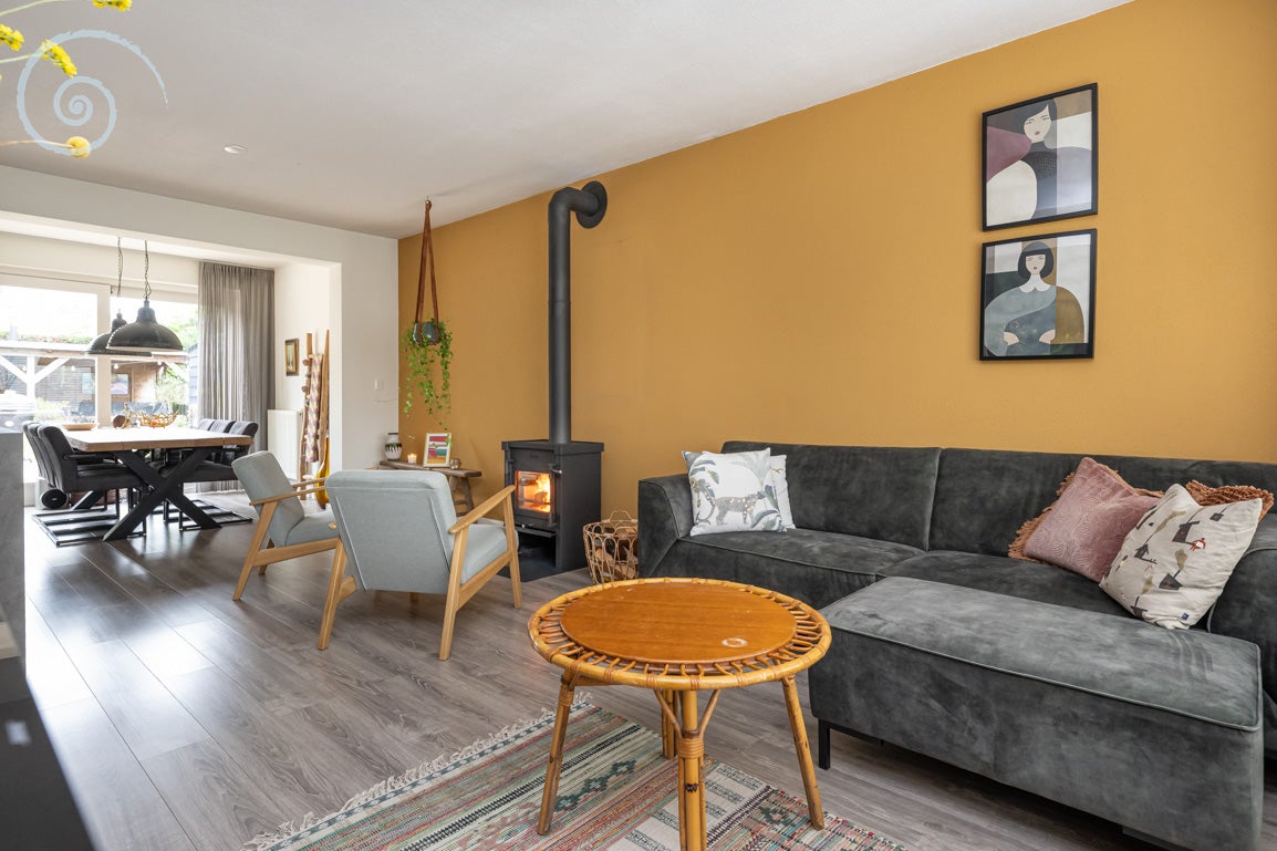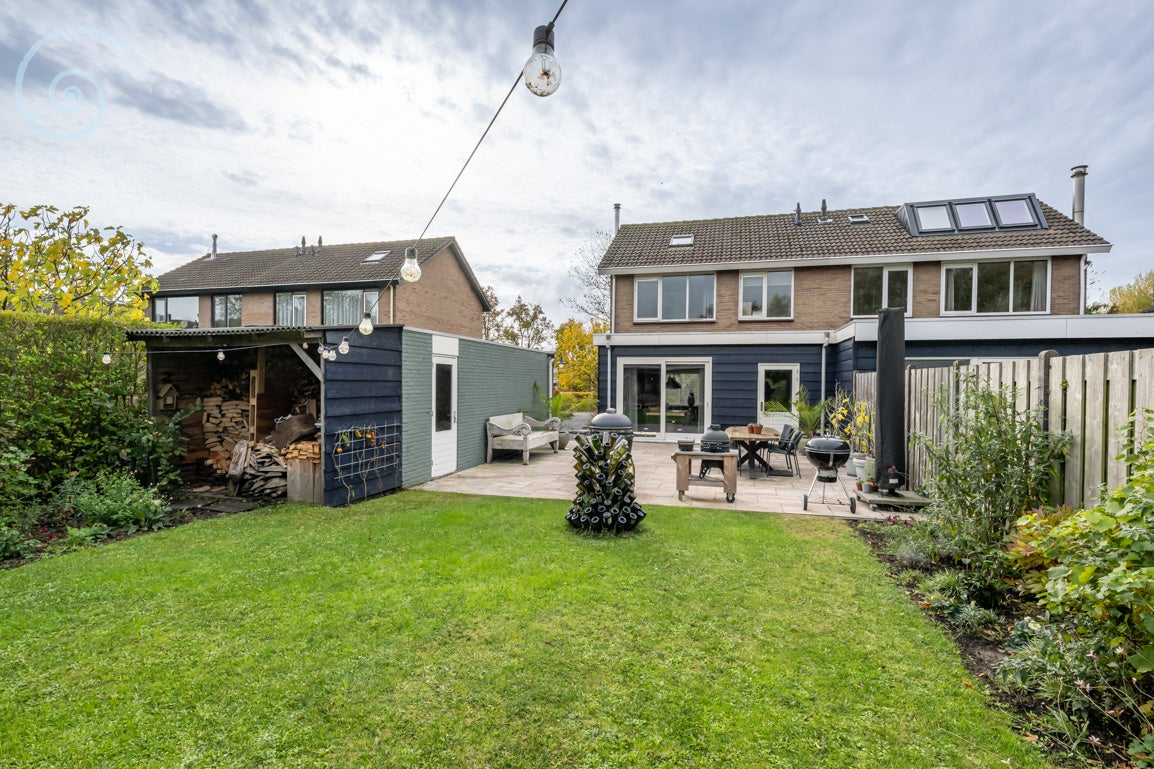 Deze gemoderniseerde twee-onder-één-kapwoning ligt rustig nabij het Stellebos en biedt veel gemak en comfort. De woning, in 2009 vergroot, heeft een royale tuin met een sfeervolle veranda, een ruime garage en parkeergelegenheid op eigen terrein. Binnen vindt u een stijlvolle woonkamer met een houtkachel uit 2024, een moderne open keuken met hoogwaardige inbouwapparatuur en een praktische bijkeuken. De eerste verdieping heeft drie slaapkamers en een eigentijdse badkamer. De zolder biedt mogelijkheden voor uitbreiding. De goed aangelegde tuin, met een terras en houtkachel, is perfect voor elk seizoen. Deze woning combineert modern wooncomfort met een groene, rustige ligging.
