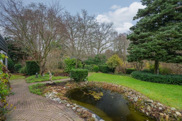 Via de diverse schuifpuien en de vrije achterom (aan beide zijden van de bungalow) komt u in de fraai aangelegde tuin met vijverpartij.