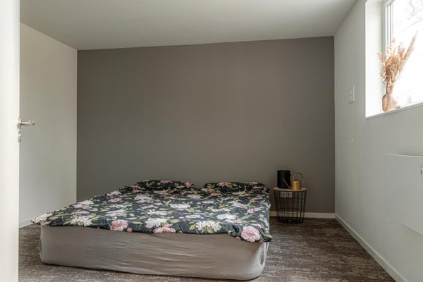 Achter deze slaapkamer ligt een praktische klus-/werkruimte, die ook uitstekend kan dienen als fietsenberging.