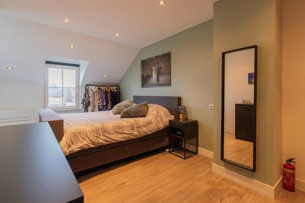 De overloop geeft toegang tot drie slaapkamers en de badkamer. De drie slaapkamers zijn van goed formaat en geschikt als volwaardige slaap- of werkkamer.