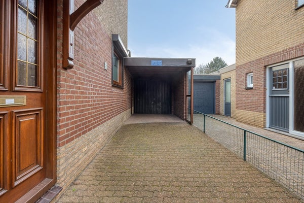 Aan de zijkant van de woning bevindt zich een ruime oprit met carport en toegang tot de garage. Achter de garage is nog een aparte berging aanwezig. Parkeren op eigen terrein is hier dus geen enkel probleem.
