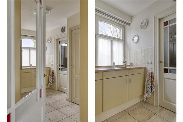 Stap binnen in de ruime woonkamer, waar daglicht vrij spel heeft en de houten details een knipoog geven naar de rijke historie van het pand. Hier is genoeg plek voor een flinke bank, een robuuste eettafel en zelfs een speelhoek, studeerplek of leesarea. De keuken biedt volop werkruimte voor wie een thuischef in zichzelf voelt opborrelen, met een praktische opstelling en vrij uitzicht aan de voorzijde van de woning. Kom binnen, sla een kookboek open en zie het gezin aanschuiven terwijl de geur van een versbereide maaltijd zich door het huis verspreidt.