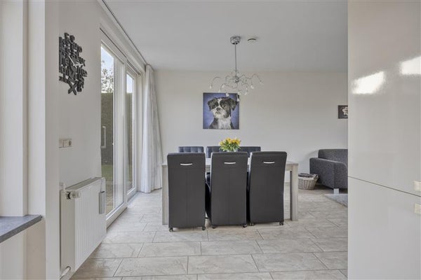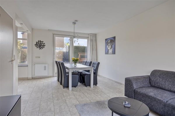 De zonnige woonkamer is dé plek om met familie of vrienden neer te ploffen op de bank. Dankzij de grote ramen stroomt er heerlijk veel daglicht naar binnen, waardoor de hele ruimte een frisse en uitnodigende uitstraling heeft. De open en overzichtelijke indeling zorgt ervoor dat je je meteen welkom voelt. Vanuit de woonkamer kijk je zo uit op de achtertuin, die met zorg is aangelegd en uitnodigt om buiten te ontspannen. En heb je groene vingers? Dan is dit dé plek om je tuinier-dromen waar te maken.