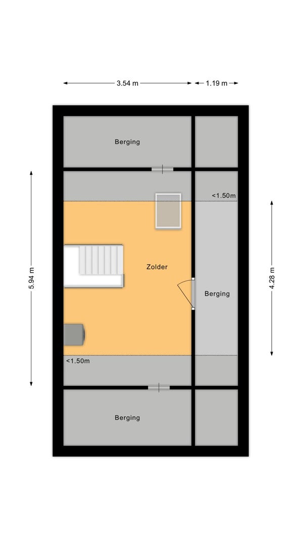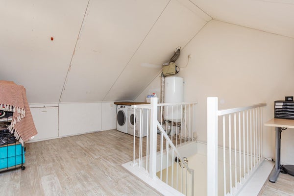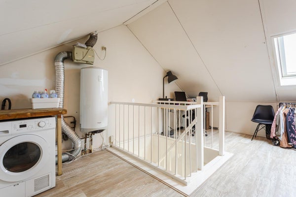 Middels een vaste trap te bereiken zolderverdieping met dakraam en een extra vaste inloopkast. Tevens vindt u op deze verdieping de elektrische boiler, wasmachine en droger aansluiting en de mechanische ventilatie unit.