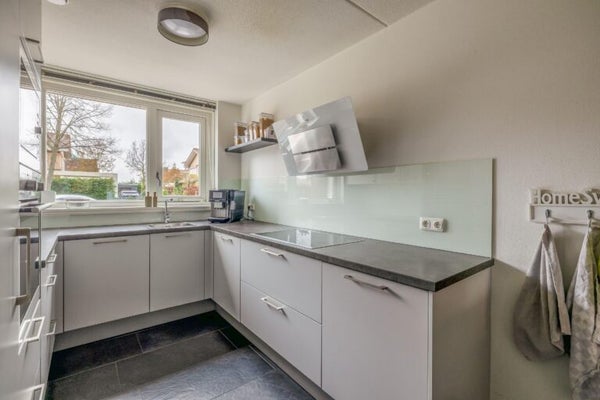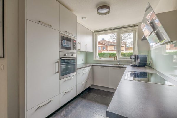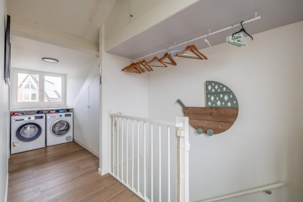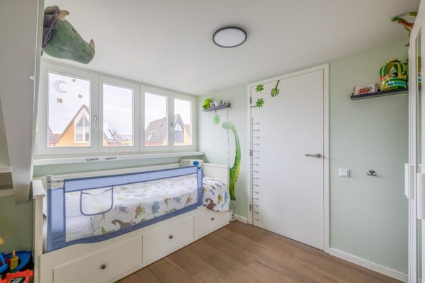 Deze sfeervolle eengezinswoning in een rustige buurt biedt veel leefruimte voor het hele gezin. Met 5 slaapkamers en een ruime badkamer is er ruimte en comfort voor iedereen. Op de tweede verdieping geniet je van een prachtig uitzicht vanaf het dakterras. De begane grond heeft een ruime hal die toegang biedt tot de lichte woonkamer met vloerverwarming. Via de tuindeuren stap je de zonnige tuin op het zuidoosten in, die ook een schuur heeft voor extra opslag. De moderne keuken is volledig uitgerust met inbouwapparatuur. Op de eerste verdieping vind je drie ruime slaapkamers en een vernieuwde badkamer. De zolder heeft nog twee slaapkamers, met voldoende opbergruimte. De tuin en dakterras zijn via de zolder bereikbaar. Het huis is gelegen in een kindvriendelijke buurt, met scholen en supermarkten op loopafstand.