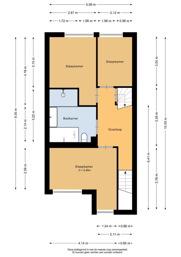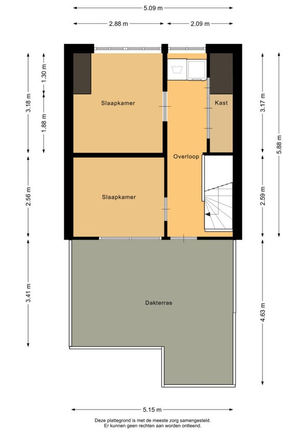 - De tussenwoning heeft een woonoppervlakte van 129 m² en beschikt over 6 kamers, waarvan 5 slaapkamers;