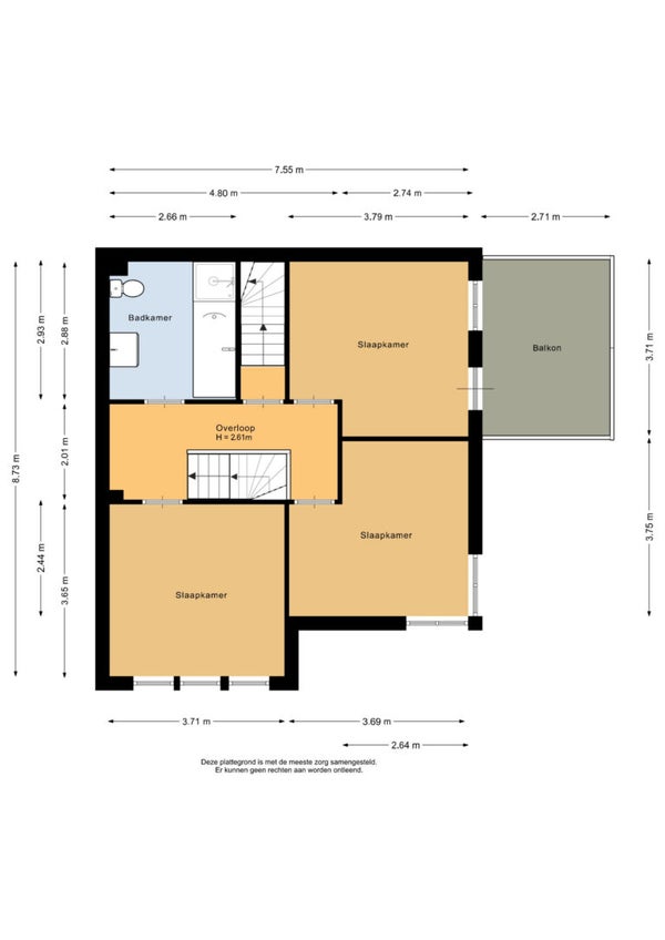 - De tussenwoning heeft een woonoppervlakte van 148 m² en beschikt over 4 kamers, waarvan 3 slaapkamers;