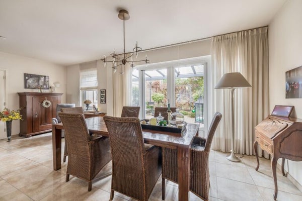 Deze bungalow, gelegen aan de rand van het bos in een rustige straat, biedt een schitterend aangelegde tuin met overkapping. Met 4 slaapkamers en een woonoppervlakte van 140 m2 is dit de ideale woning voor zowel gezinnen als senioren. Na de verbouwing in 2007 is de woning perfect onderhouden. Bij binnenkomst in de ruime entree vind je de eerste slaapkamer, toilet, en de betegelde woonkamer met vloerverwarming. De half-open keuken is uitgerust met moderne apparatuur. Openslaande deuren leiden naar de patiotuin, perfect om te ontspannen. De tuin, zuidwestelijk georiënteerd, zorgt voor volop zonlicht. De 4 slaapkamers zijn ruim en variëren in sfeer. De en-suite badkamer is toegankelijk voor rolstoelgebruikers. De woning is goed geïsoleerd en voorzien van vloerverwarming. Met een garage, en open parkeergelegenheid, is dit de perfecte plek voor comfort en gemak.
