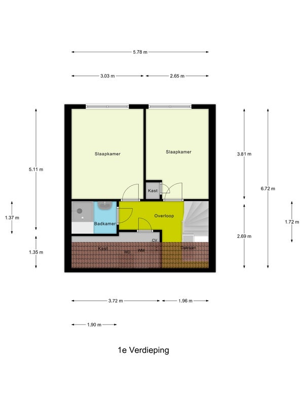 - De tussenwoning heeft een woonoppervlakte van 70 m² en beschikt over 6 kamers, waarvan 2 slaapkamers;