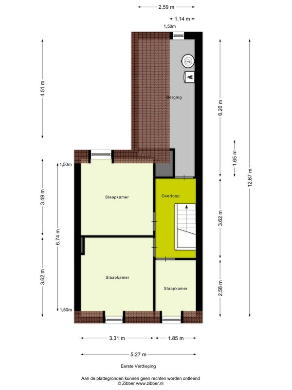 - De tussenwoning heeft een woonoppervlakte van 114 m² en beschikt over 5 kamers, waarvan 2 slaapkamers;