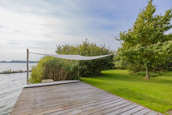 Vanuit de tuin kijkt u uit over de schitterende Langeraarse Plassen, waar u kunt varen, zwemmen of simpelweg genieten van het uitzicht en de ondergaande zon.