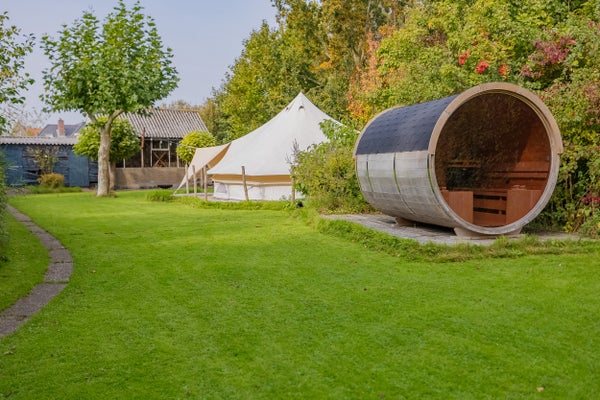 • Sfeervolle tipitent en een ronde sauna voor ultieme ontspanning