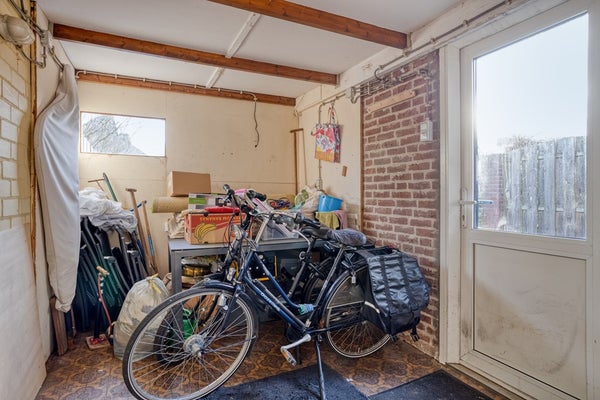 De aanpandige berging is voorzien van elektra en is bereikbaar vanuit de tuin en vanuit het achterportaal van de woning.