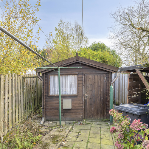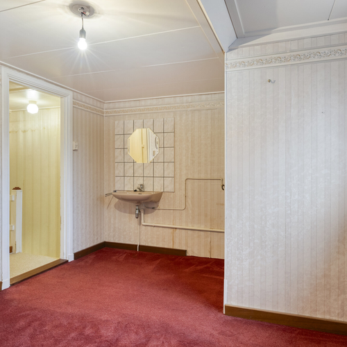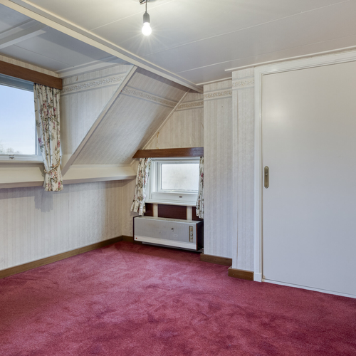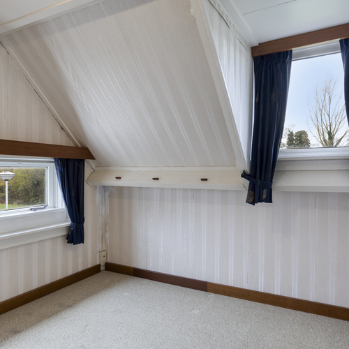 Op de eerste verdieping zijn er twee slaapkamers en een vaste kast. De ruime slaapkamer achter heeft ook een vaste kast en geeft toegang tot het toilet. In de tuin staat een tuinhuis en een extra perceel van 140m2 biedt ruimte om het naar wens in te delen. Dit huis is ideaal voor wie een betaalbare woning zoekt om naar eigen smaak te renoveren.