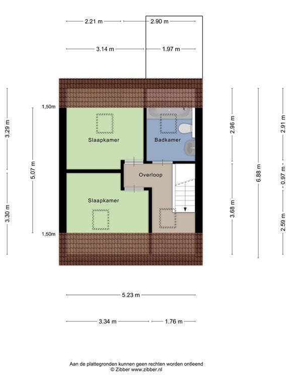 - De tussenwoning heeft een woonoppervlakte van 67 m² en beschikt over 3 kamers, waarvan 2 slaapkamers;