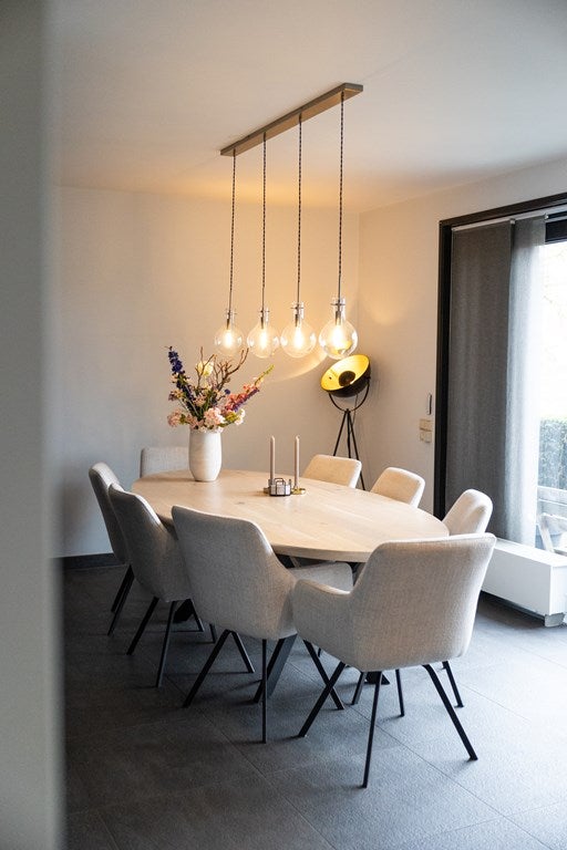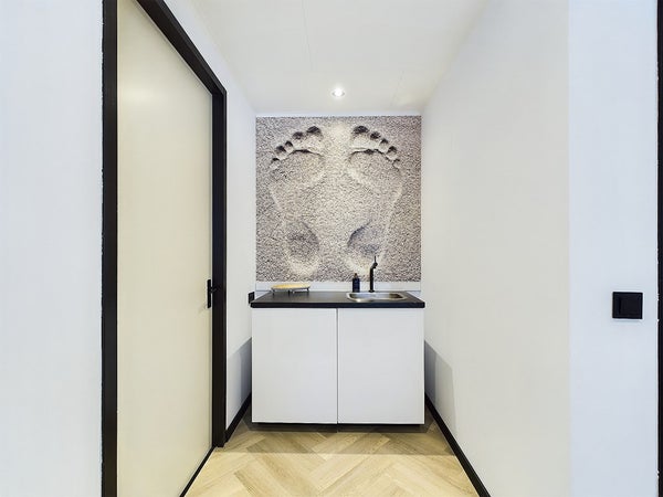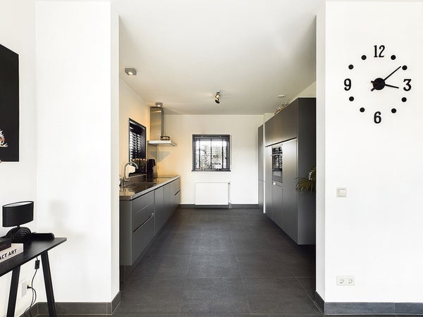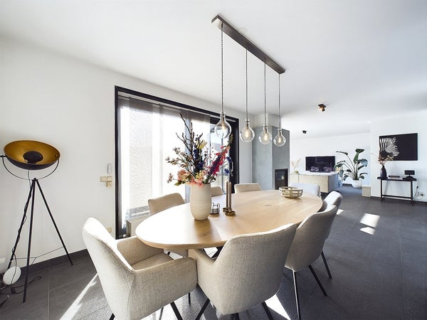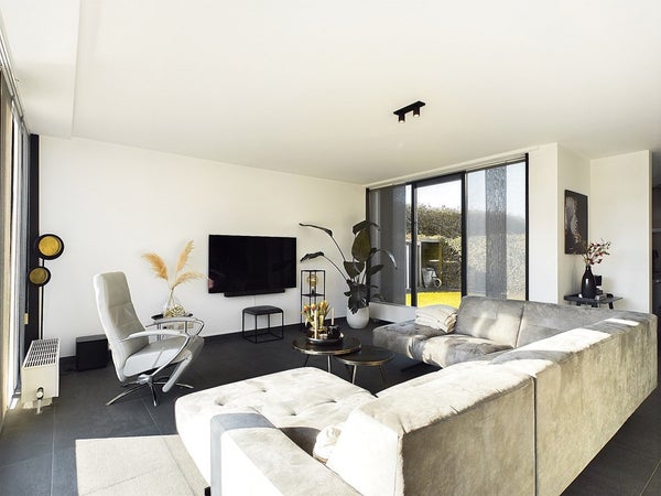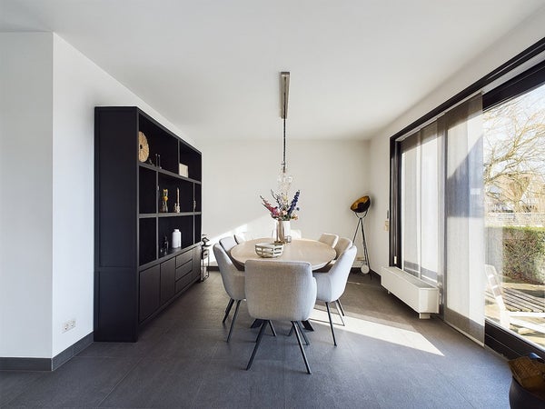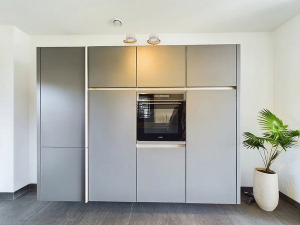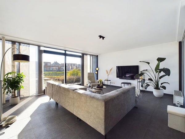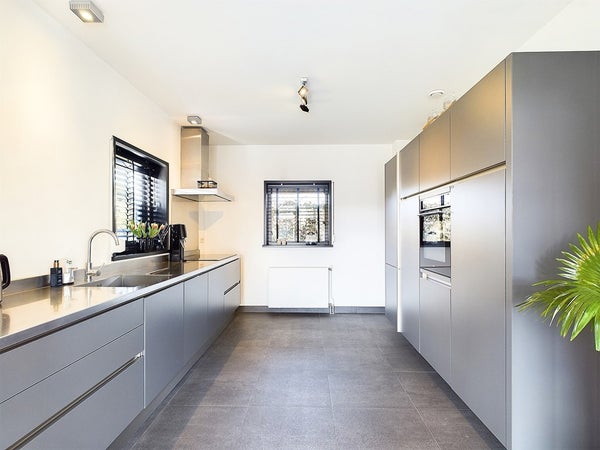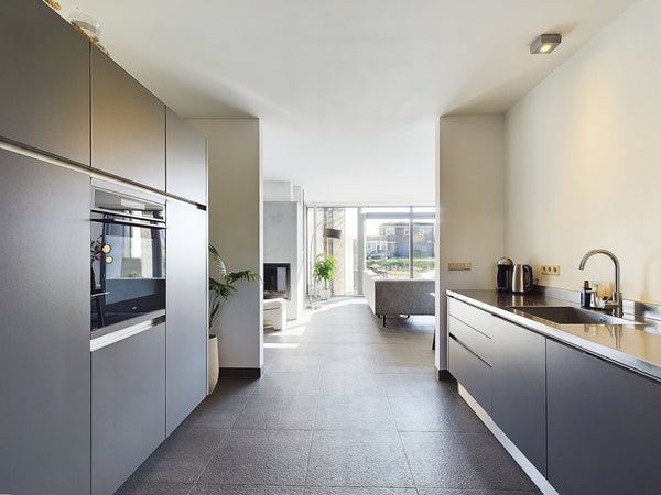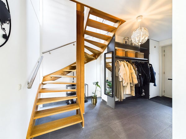 Binnenkomst in de ruime entree met garderobe. De entree biedt toegang naar de toiletruimte, bijkeuken en de woonkamer. Door de glazen deur komen we de royale woonkamer binnen. Opvallend is dat je hier dankzij de schuifpui en grote raampartijen letterlijk de zon in huis hebt èn geniet van schitterend zicht. De moderne afwerking sluit volledig aan bij de keuken, welke voorzien is van alle benodigde inbouwapparatuur en veel bergruimte. De sfeervolle eethoek biedt voldoende plek voor een grote tafel, een ideale setting voor diners en gezellig samenzijn.