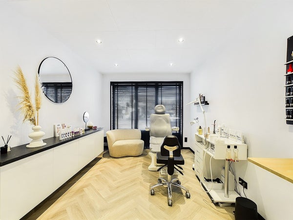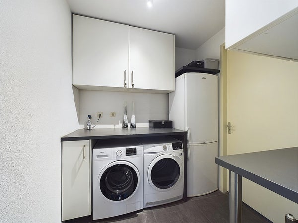 De bijkeuken is ingericht als wasruimte. Via de bijkeuken is de salon bereikbaar. De salon heeft tevens een eigen ingang en een kleine wachtruimte. De salon is prachtig afgewerkt met mooie visgraatvloer en beschikt over vloerverwarming en een keukenblok. Deze ruimte is voor zeer veel doeleinden geschikt, naast het beginnen van je eigen salon, praktijk of kantoor kan je deze ruimte ook eenvoudig betrekken bij de garage of omtoveren naar slaapkamer.