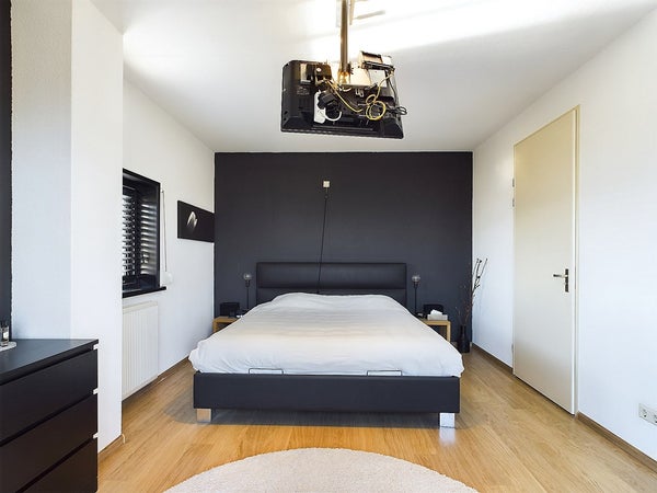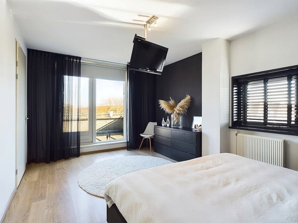 Overloop met kastruimte en toegang naar het balkon en de 4e slaapkamer. Deze slaapkamer is eveneens opvallend ruim met openslaande deur naar balkon. Aangrenzend bevinden zich een walk-in closet met volop opbergmogelijkheden en de 2e badkamer.
