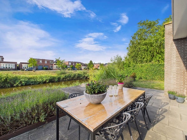 De fraai aangelegde tuin is gesitueerd op het Zuiden en beschikt over een tuinhuis, een aangelegd terras, een ruim gazon en verschillende zitplekken. In deze prachtige tuin kun je al je creativiteit kwijt en geniet je volop van het buitenleven. Aan het water bevindt zich een ruime vlonder, dit is een perfecte plek om na een lange dag heerlijk tot rust te komen. Genietend van de rust en het schitterende zicht krijg je hier gegarandeerd een vakantiegevoel.