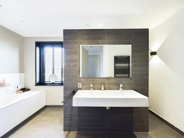 Op de eerste verdieping tref je een ruime overloop aan met opgaande trap naar de 2e verdieping. Drie ruime slaapkamers met veel lichtinval, de ramen voorzien van rolluiken. Eén van de slaapkamers is voorzien van een grote prachtige inbouwkast. De mooie badkamer beschikt over vloerverwarming en is praktisch ingedeeld met een inloopdouche, ligbad, hangtoilet, designradiator en dubbel wastafelmeubel.