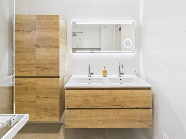 Overloop met toegang tot 3 ruime slaapkamers en de badkamer. De schitterende badkamer is van alle benodigdheden voorzien: Een royale inloopdouche, toilet en dubbele wastafels met bijpassend meubel. Daarnaast is er in de badkamer vloerverwarming aanwezig.