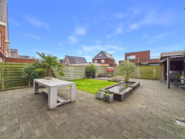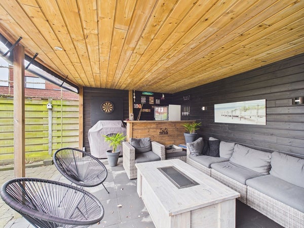 Dankzij de stijlvolle overkapping is er altijd een aangename plek in de schaduw beschikbaar. Tegelijkertijd biedt de tuin volop zon voor wie daar juist van wil genieten. Er zijn twee bergingen aanwezig, ideaal voor het opbergen van fietsen en tuinbenodigdheden.