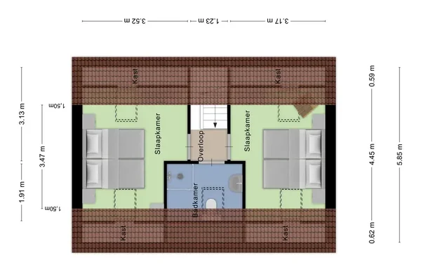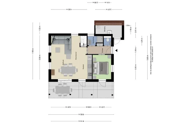 - De tussenwoning heeft een woonoppervlakte van 77 m² en beschikt over 4 kamers, waarvan 2 slaapkamers;
