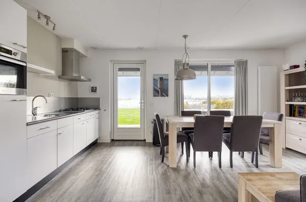 Deze vrijstaande recreatievilla aan de Oesterdam 77 in Tholen biedt ruimte voor zes personen en ligt prachtig aan het Zoommeer, met vrij uitzicht over het water. Met 640 m² eigen grond en een energielabel B, is de villa in 2014 gebouwd en wordt volledig gestoffeerd en gemeubileerd aangeboden. Binnen vindt u 77 m² woonoppervlakte en een aangebouwde veranda van 20 m², ideaal voor zomerse avonden. De lichte woonkamer met open keuken en gashaard biedt toegang tot de tuin, terwijl de achtertuin direct toegang heeft tot een strandje en een speeltuin op loopafstand. De villa heeft twee slaapkamers, twee badkamers en een ruime oprit voor twee auto’s. Bovendien is er een ligplaats voor een boot aanwezig. Tholen zelf biedt een charmant stadscentrum met toegang tot omliggende steden.
