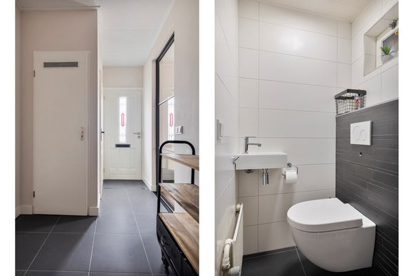 • Toegang tot toilet met fontein, vernieuwde meterkast (2022, slimme meter) en trapopgang