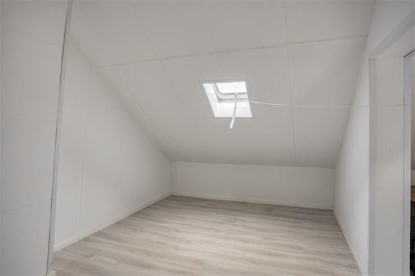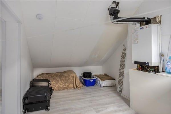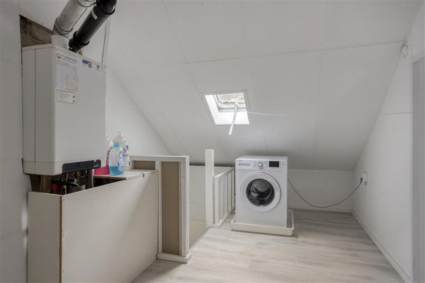 Via de vaste trap bereik je de verrassende tweede verdieping. Hier vind je een voorzolder waar de CV-ketel netjes is weggewerkt, evenals de aansluitingen voor je was- en droogapparatuur. Dankzij de slimme indeling is er zelfs een vierde slaapkamer gerealiseerd door middel van een tussenwand. Dit maakt de woning verrassend ruim en flexibel in gebruik.