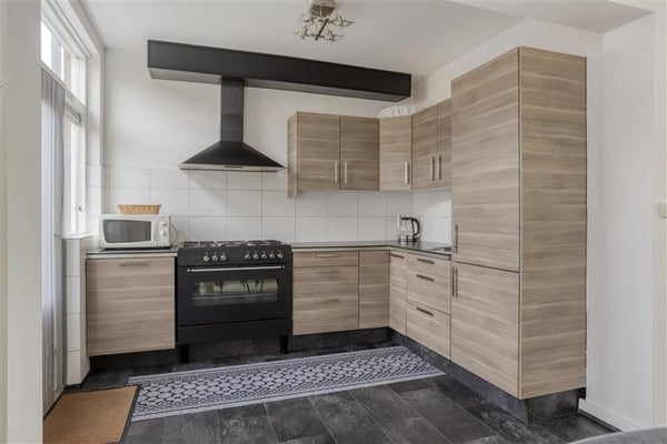 Strakke afwerking: met moderne wand- en vloerafwerking én een complete keuken.