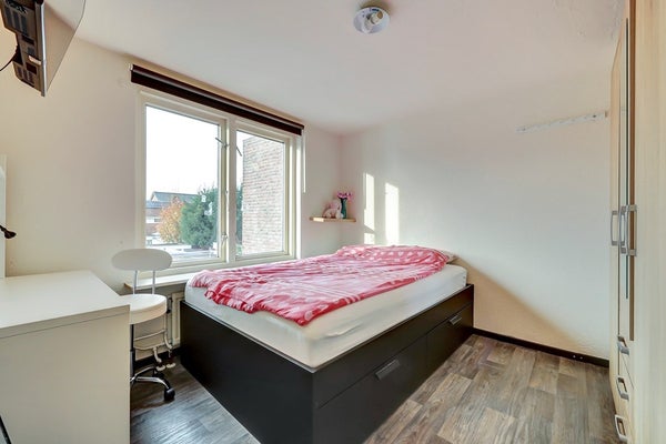 Vanaf de overloop bereik je drie fijne slaapkamers. Aan de voorzijde ligt een royale slaapkamer, terwijl aan de achterzijde nog twee kamers zijn gesitueerd. Deze twee kamers aan de achterzijde zijn uitgerust met rolluiken. De houten kozijnen zijn bovendien voorzien van HR-glas, wat bijdraagt aan het wooncomfort.