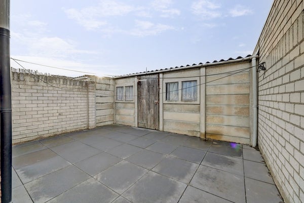 De royale, onderhoudsvriendelijke achtertuin is volledig betegeld en heerlijk zonnig dankzij de ligging op het westen. Achterin staat een grote berging, ideaal voor fietsen, gereedschap of hobby’s. Via de berging heb je direct toegang tot de achterom.