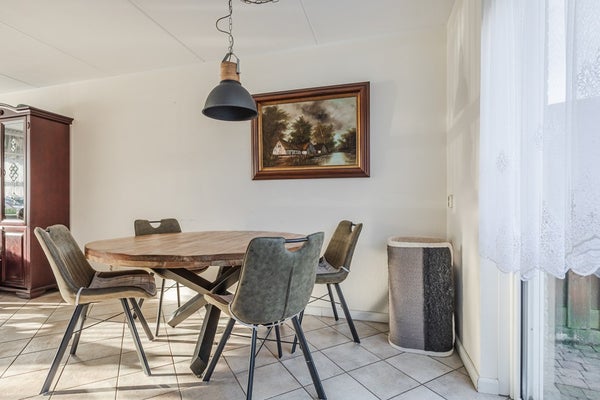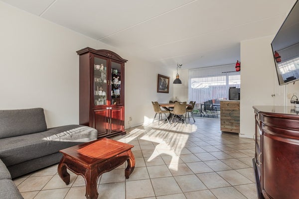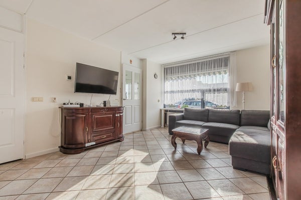 Via de overdekte entree betreed je de woning in de hal met meterkast, toiletruimte en trapopgang naar de verdiepingen. Vanuit de hal heb je toegang tot de lichte en verrassend ruime woonkamer. Dankzij de brede raampartij en de praktische rechthoekige vorm is de woonkamer uitstekend in te richten met een comfortabele zithoek en een royale eettafel.
