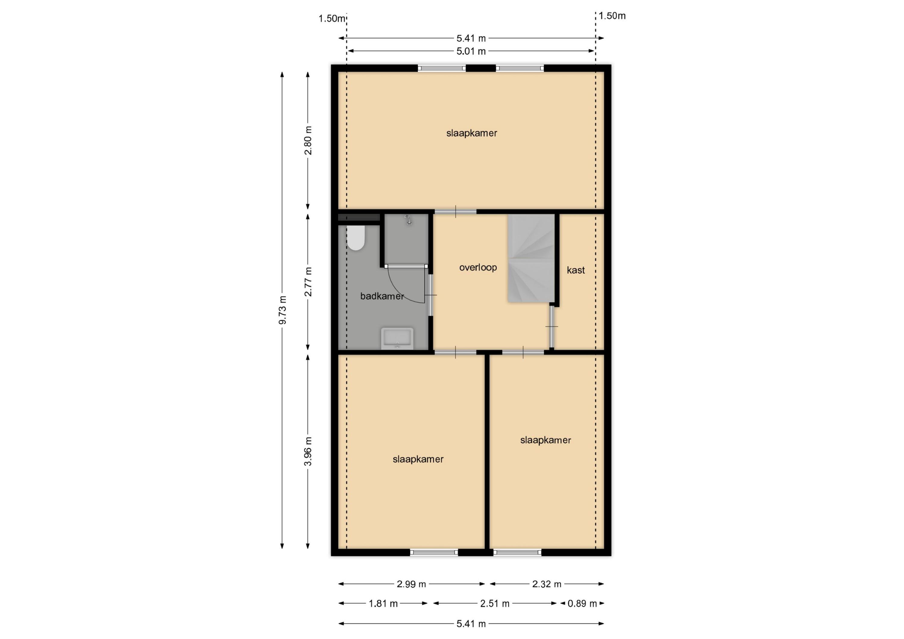 - De tussenwoning heeft een woonoppervlakte van 129 m² en beschikt over 6 kamers, waarvan 4 slaapkamers;
