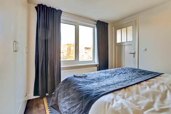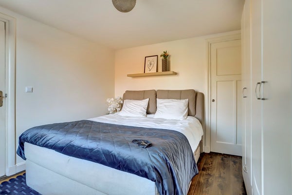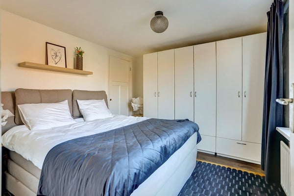 Aan de achterzijde van de woning ligt de tweede slaapkamer, ook uitgevoerd met een praktische inbouwkast.