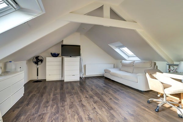 Via een vaste trap bereik je de ruime zolderverdieping. Deze ruimte is perfect te gebruiken als slaapkamer, werk- of hobbykamer. De zolder is volledig geïsoleerd, waardoor het een comfortabele ruimte is. De laminaatvloer zorgt voor een moderne afwerking en een praktische uitstraling.