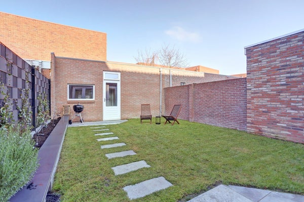 Achter in de tuin staat een recent gebouwde, ruime berging. Deze multifunctionele ruimte is perfect te gebruiken als hobbyruimte of voor het opbergen van fietsen en gereedschap. Vanuit de berging heb je bovendien directe toegang tot de achterom richting de straat.
