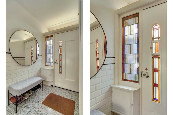 De entree met glas-in-loodramen, gecombineerd met de volledig gemoderniseerde en uitgebouwde woning, geeft het huis een uniek karakter. Hier versmelten oud en nieuw op een prachtige manier.
