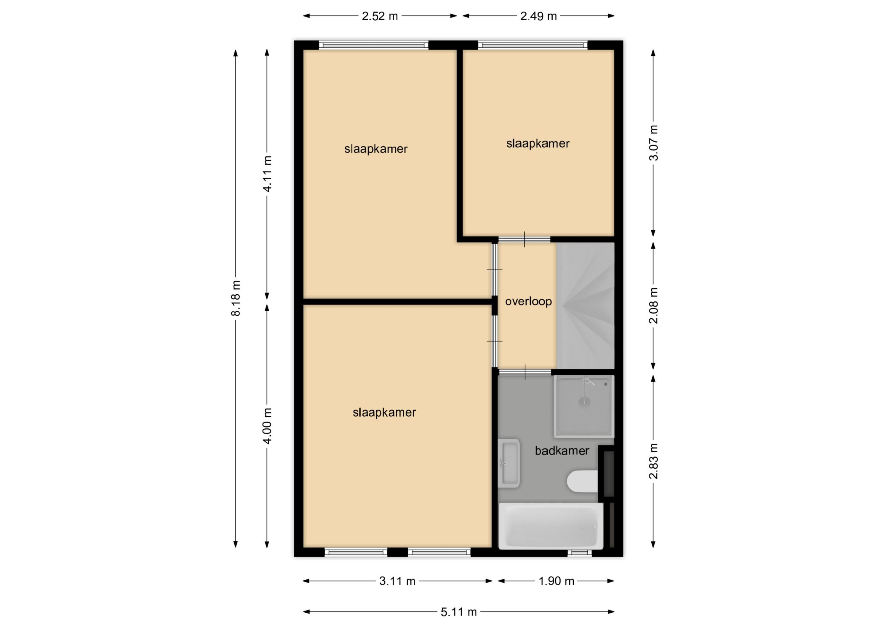 - De tussenwoning heeft een woonoppervlakte van 111 m² en beschikt over 5 kamers, waarvan 4 slaapkamers;