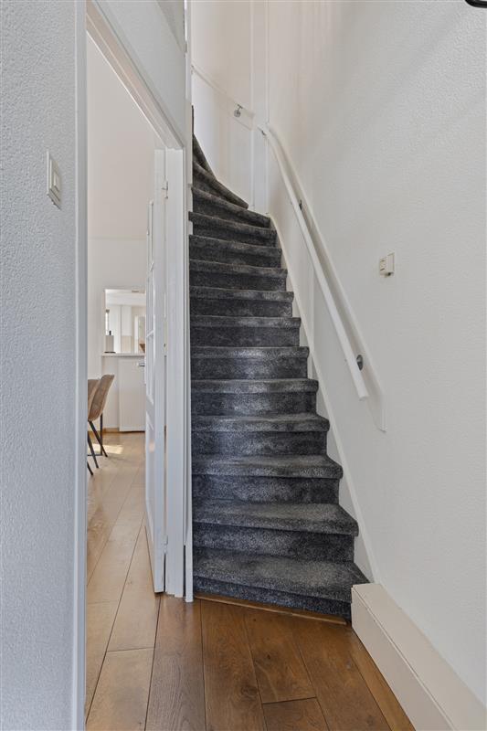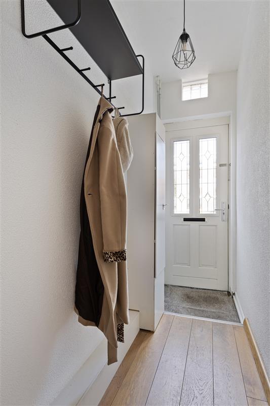 Stel je voor dat je thuiskomt in deze prachtige woning in de Wijk Oerle. Bij binnenkomst word je verwelkomd door een frisse, strak gestucte entree met toegang de trapopgang en de woonkamer. De sfeer is meteen uitnodigend en warm; de Franse eikenvloer geeft een luxe uitstraling. Aan de linkerkant van de entree krijg je de toegang tot de ruime, uitgebouwde woonkamer. Geniet van het knapperende haardvuur dat wordt verspreid door de moderne houtkachel en voel je helemaal op je gemak onder de airconditioning.