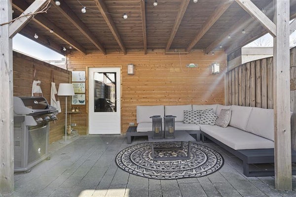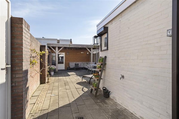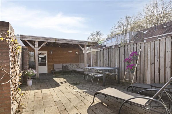 Stap buiten en ervaar de oase van rust in de achtertuin. Met een eigen achterom is het een plek waar je echt kunt ontspannen of elk moment van de dag kunt genieten van de zon. De tuin is netjes verzorgd, voorzien van een stenen berging en biedt veel mogelijkheden; van een barbecue met vrienden tot een rustige ochtend met een kop koffie onder de houten veranda.