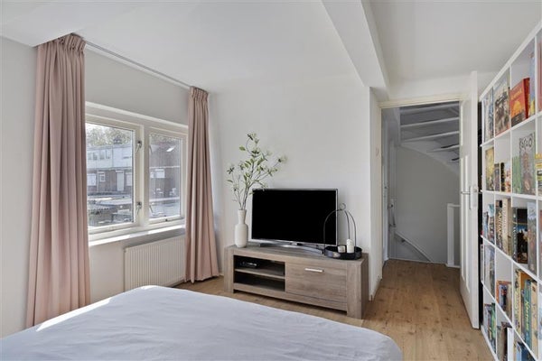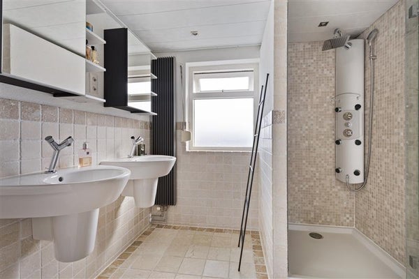 De eerste verdieping herbergt maar liefst drie slaapkamers. De twee slaapkamers aan de voorzijde zijn royaal met respectievelijk 12 en 8 m², terwijl de slaapkamer aan de achterzijde ook een prettige 12 m² biedt. De lichte, warme wand- en vloertegels van de badkamer maken deze ruimte tot een echte wellness-faciliteit, verder voorzien van een prima douche, 2 wastafels met spiegelkasten, designradiator, spotjes en een rolluik.