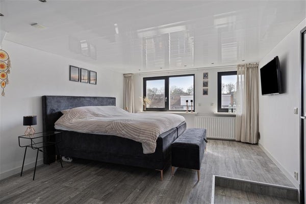 Op de zolderverdieping, met opbouw, wacht je een verrassing: de royale masterbedroom met een riante walk-in-closet. De tweede badkamer met lichtkoepel, whirlpool ligbad, toilet en wastafel maakt het af – ideaal voor een verwenmoment na een drukke dag.